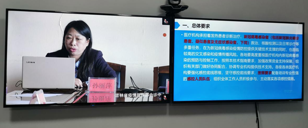 (霍明 报道)9月28日下午,我院副院长殷艳玲、医院感染管理部副主任孙丽萍受吉林省卫生健康委医政医管处邀请,参加吉林省新冠肺炎疫情防控和医疗救治工作视频会议。面向全省各市(州)、县(市、区)卫生健康委(局)负责同志,医政医管处(科)主要负责同志,基层处(科)、科教处(科)、应急办、疾控处(科)、规划处(科)、财务处(科)负责同志,中医药管理局医政处(科)负责同志,全省所有二级以上医疗机构(含中医)负责同志和医务、护理、发热门诊、感染防控、临床检验等部门负责同志,进行《发热门诊设置管理规范和新冠肺炎定点救治医院设置管理规范》《医疗机构内新型冠状病毒感染预防与控制技术指南(第三版)》的解读和培训。